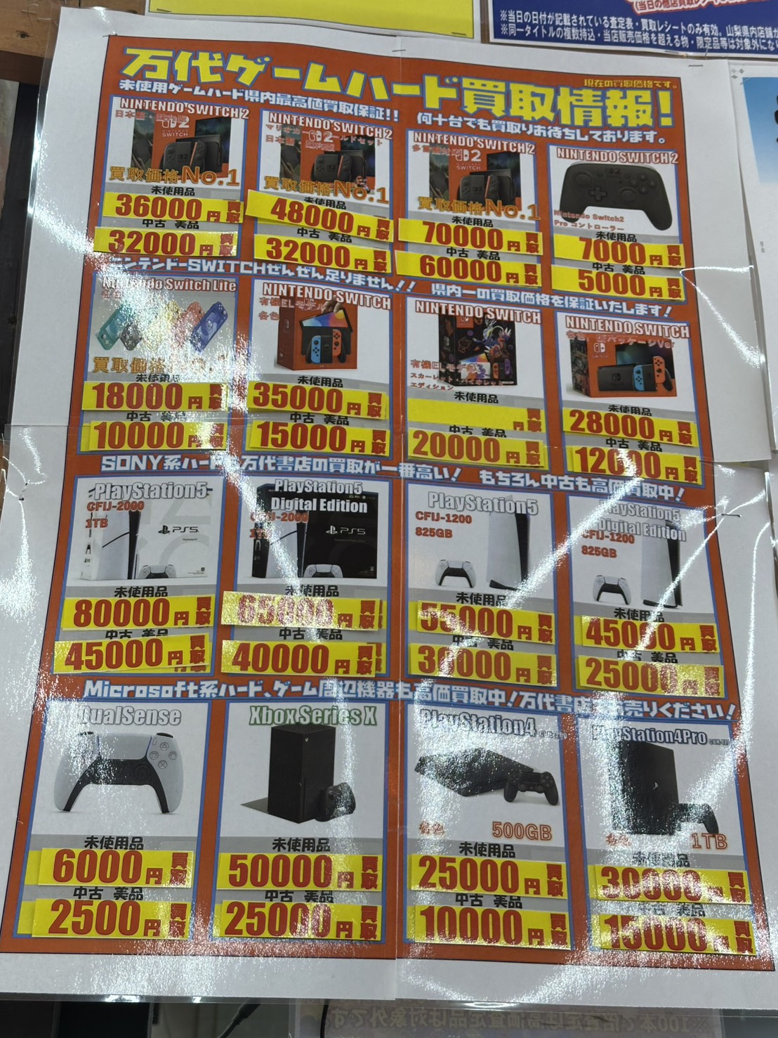 2026.04.21 買取告知 takalab_2 ★本日のゲームハードの買取金額になります!★ 本日のゲームハードの買取金額になります! 県内最高値買取保証! 何台でも買取致します! お持ち込みお待ちしております。 ※状態により上記の金額で買取出来ない場合もございます。 ご了承ください。 ※2026/4/21現在の価格となります。 在庫状況・状態によってお値段が変動いたします。予めご了承ください。 **************** こちら↓もぜひチェックしてみてくださいね♪(*´▽`*) ・最新のイベント情報はこちら ・最新の買取情報はこちら