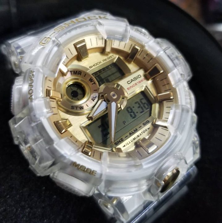 View this post on Instagram 入荷情報✨ G-SHOCK 35周年記念モデル GA-735E-7AJR ホワイトスケルトンにゴールドが とてもキレイ&#…