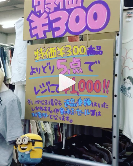 なんと本日より レディースコーナーの¥300商品が 5点で¥1,000になっちゃううれしいお買い得企画がはじまりましたー👾🎉💕 . 4点買うより5点!選んだ方がお得!!&#…