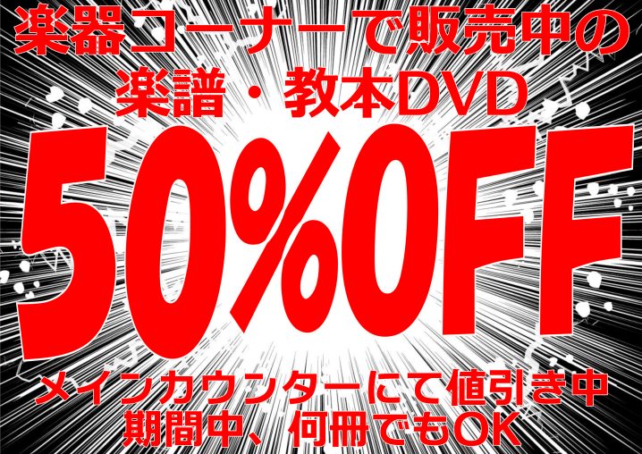 プレミアムガチャ・1000円ガチャの裏側辺りです。 楽譜50%OFFやってます