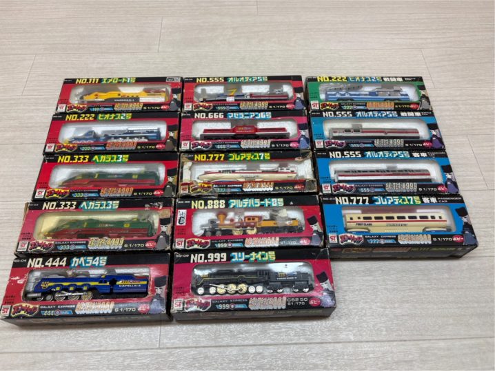 今日は希少なおもちゃを買いました。 ポピー銀河鉄道999 スタートレインシリーズの買取です。 先頭車両フルセットや客車も一部 有ります! 昔のおもちゃもどんどん買いますよ〜是非お持ち下さい!