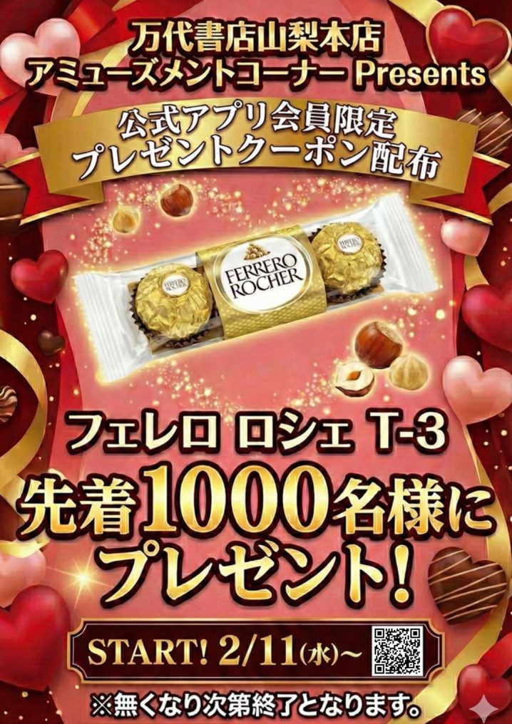 ★《2月11日から》公式アプリ会員限定「フェレロ ロシェ T-3」先着1000名様プレゼント★