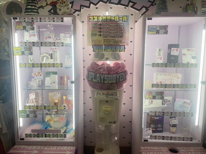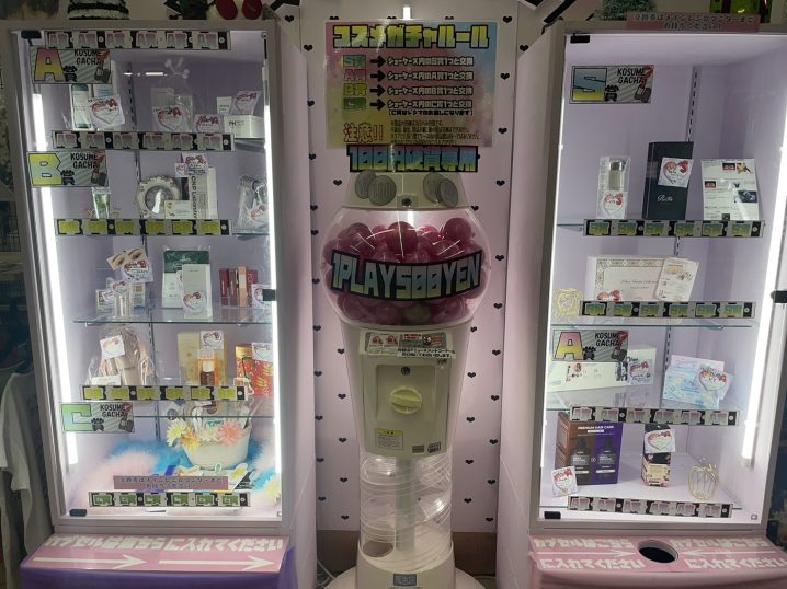 CDコーナーより コスメガチャ連日稼働中! 店内奥アイドルグッズコーナーの横で展開してます! 憧れのアイテムが1回500円で手に入るかもしれません🙌🏻💕 ぜひチャレンジして…