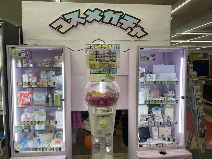 CD&DVDコーナーより 大好評コスメガチャ!! 只今当たり玉増量中ーー 憧れのハイブランドや話題のコスメなど一回500円で手に入るかも? 場所はアイドルグッズコーナー隣です 気になる方是非チェックよろしくお願いします …