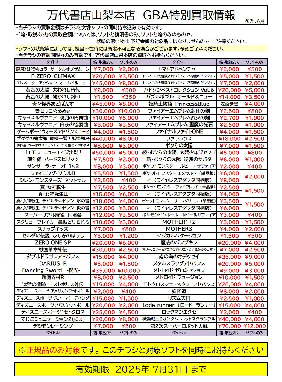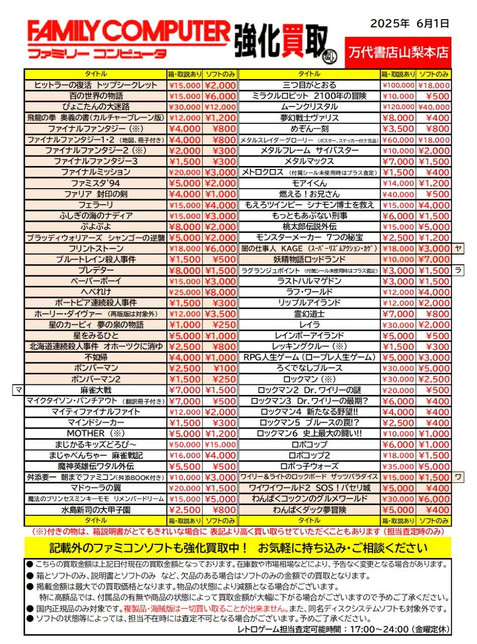万代書店山梨本店 最新の買取情報はこちらから! 高く売る秘訣はココ☆ [wc_row] [wc_column...